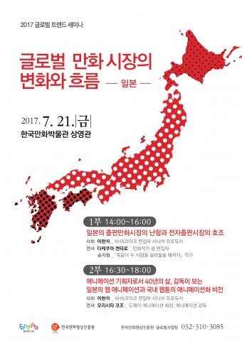 세미나는 21일 오후 2시부터 한국만화박물관 1층 상영관에서 진행될 예정이며 모리시타 코조 회장 뿐 아니라 일본 만화 평론가 타케쿠마 켄타로와 ‘죽음이 두 사람을 갈라놓을 때까지’의 송지형 작가가 연사로 참여한다.
